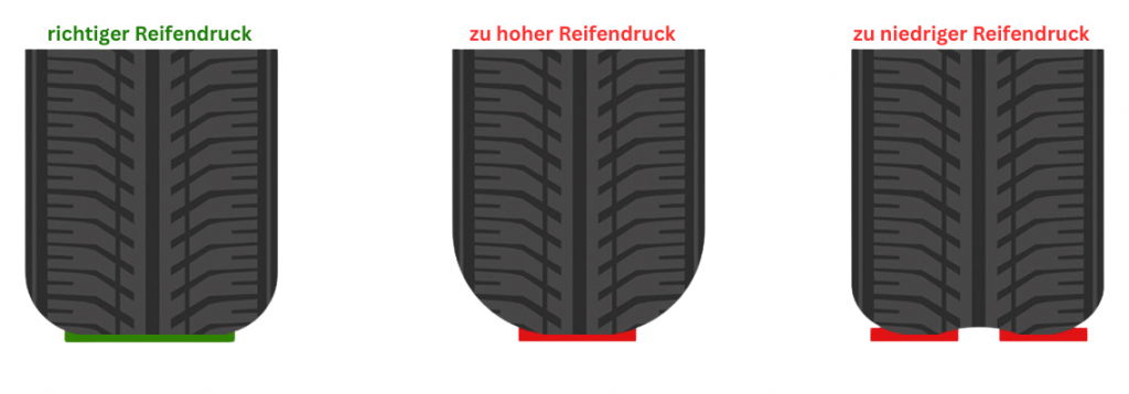 Ein zu hoher Druck wiederum reduziert die Auflagefläche des Reifens – der Grip nimmt ab.